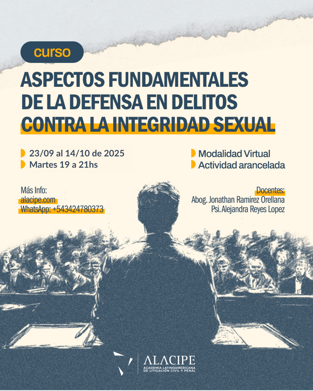 Descripción: Este curso virtual surge como una respuesta esencial a las numerosas dificultades que enfrentan aquellos que desempeñan el rol de la defensa en un sistema acusatorio al enfrentar causas de delitos contra la integridad sexual. Con un enfoque eminentemente práctico, buscamos proporcionar herramientas concretas para la elaboración de estrategias defensivas específicas en estos casos, evitando caer en estereotipos y prejuicios. El objetivo principal es asegurar que se respeten las garantías de defensa en juicio de la persona representada, aprovechando la vasta experiencia profesional del docente principal y otros expertos.